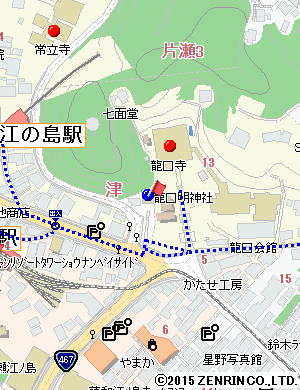 昭和五十三年に龍のロにあたるこの地より龍の胴にあたる津の新鎌倉山に御遷座され日本三大弁財天として名高い江島神社と夫婦神社として人々に崇敬されています。
