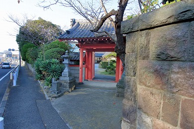 この道は海岸から国道を横切り、浄泉寺の旧山門前を通って西に続いています。昔はこの道を通り東西に行き来していたそうですから、鎌倉に通じる旧本道だったと思われます。さらに昔は浜伝いに往来していたことからも、十間坂はやはりここを指すものと思われます。