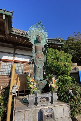 この寺の開山は行基といわれています。寺の伝えによれば、奈良時代に関東地方に悪い病気が流行してたくさんの死者が出ました。聖武天皇はこれを心配し、行基に「これから関東に下って悪い病気を除くように。」と命じました。はるばる鎌倉に来た行基は、前に広がった青い海原と後ろの山並みがとても美しく