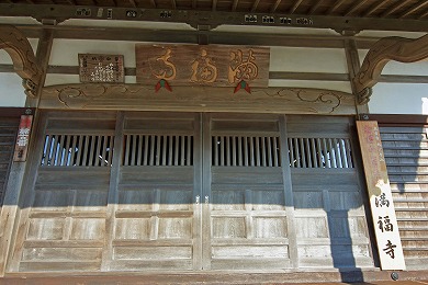 本堂の軒の正面にある梁の上には、武将姿の義経と文机の前で筆をとる姿の弁慶が浮き彫りされていて珍しいものです。また、本堂の天井には龍の絵が描かれ、奥の位牌堂の天井には柄が全て違う48種類の