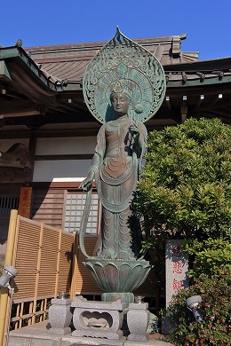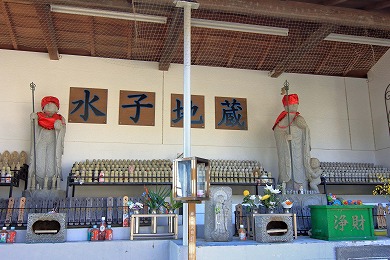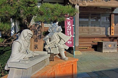 本堂右には弁慶が腰越状の下書きをしたときに水をくんだという硯の池があり、右裏手には義経が手を洗ったという井戸、本堂左には弁慶の手玉石・腰掛石と伝えられる石や「源義経公慰霊碑」が立っています。