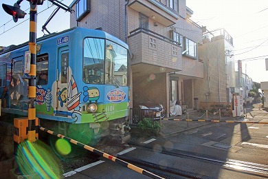 江ノ電の踏切があります。