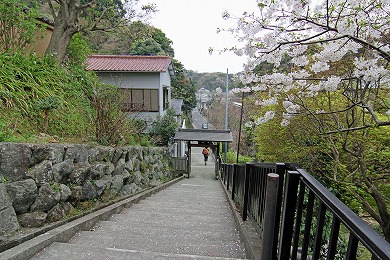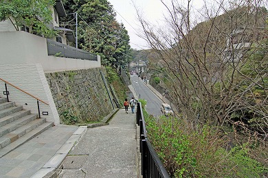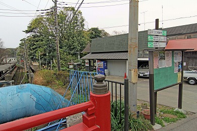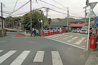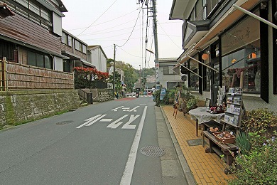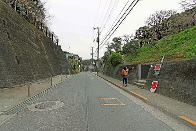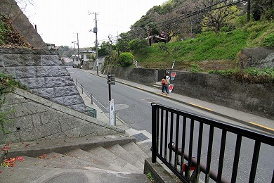 道路に出ると、横断し、真っ直ぐ(西へ)。