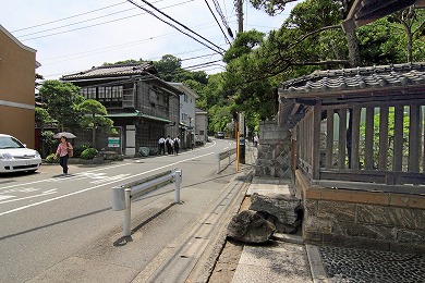 昔の旅人が極楽寺坂を越えた後、この井戸水を飲み、一休みしたようすがうかがえます。水道が普及するまではこの水はよく使われ、道行く人に売られたそうです。