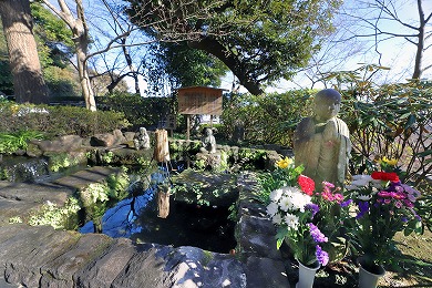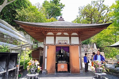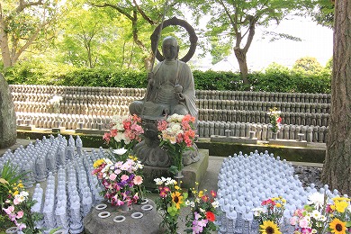 通じて花を楽しむことができるので「花の寺」ともいわれます。妙智池のとろには、以則は大黒堂(だいこくどう)がありましたが、現在は上の境内の観音堂の横に移されました。