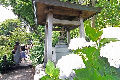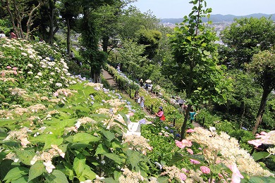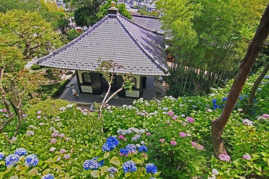 日本の土壌は酸性度が高いため、必然的に青紫色のアジサイが多い。石灰をまくことで、石灰のアルカリ性に反応し、酸性度が低くなり、翌シーズンに咲くときには、ピンク色の花びらが多くなり、色とりどりのアジサイが咲く庭になります。