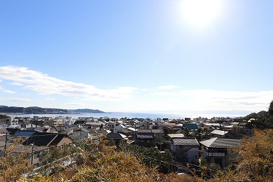 眼下には由比ケ浜から鎌倉の中心部一帯、三浦半島の低い山々まで一望のもとに見晴せます。