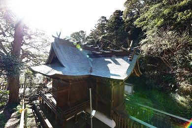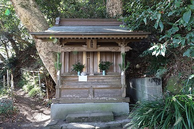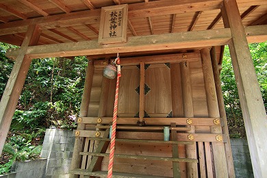 拝殿に向かって右手に伸びる苔むした古い石段の上に秋葉神社(火伏せの神)という社があります。