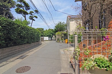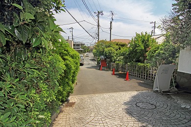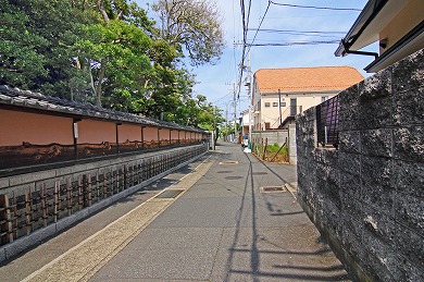 塀に囲まれた吉屋信子記念館があります。ふだんは公開されませんが、特定の日には公開されます。