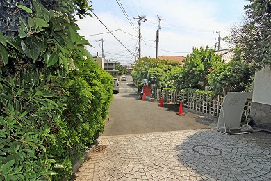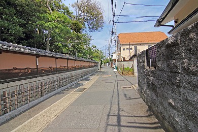 塀に囲まれた吉屋信子記念館があります。ふだんは公開されませんが、特定の日には公開されます。