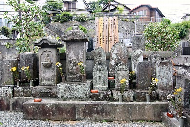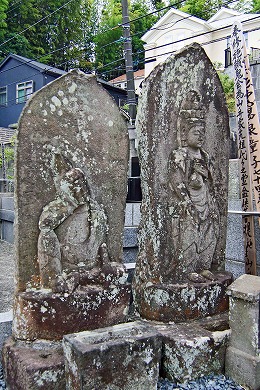子が親の供養をするめたに作られ、室町時代の墓所と考えられる裏の竹やぶのところに移されました。安山岩で作られたこのような古い板碑で年号がわかるものは珍しく、貴重な資料です。
