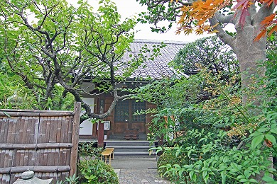 本堂に向かって右側に並んで庫裏が建っています。玄関の前には鎌倉時代の「正中二年」(1325年)の年号がある70cmほどの安山岩製の板碑(いたひ)があります。上のほうには、阿弥陀三尊のしるしである梵字(ぼんじ)が彫ってあります。