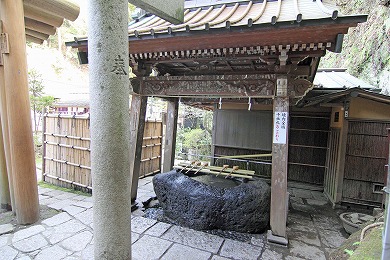 これが有名な銭洗弁天で、お参りして前の小さな池で銭やお札を洗っていく人が少なくありません。この池が鎌倉五名水の一つで、「銭洗水」と呼ばれていました。