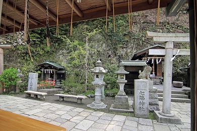 境内には、七福神をまつった神社や上の水神社・下の水神社など大小の社殿が、がけの中腹まで建っていて巡回して参拝できるようになっています。また参拝者のための茶店もあり、巳の日(巳の日が弁天様の縁日とされている)は特に賑(にぎ)わいます。