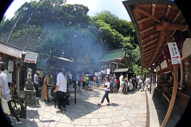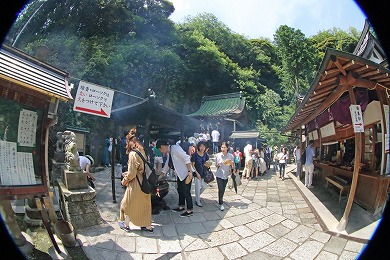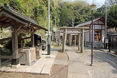 お参りして前の小さな池で銭やお札を洗っていく人が少なくありません。この池が鎌倉五名水の一つで、「銭洗水」と呼ばれていました。