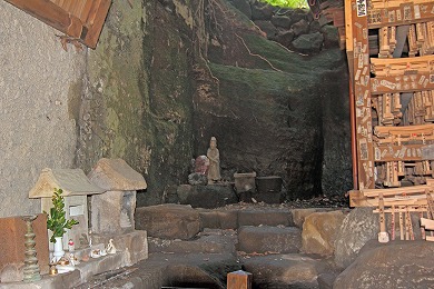 窟内には清水が珍しく湧出していて鎌倉の名水の随一である。往時福神とか福人とかが銭を洗っていたといふ因縁から、この清水を銭洗井の名跡で僅かに語り伝へてゐる。