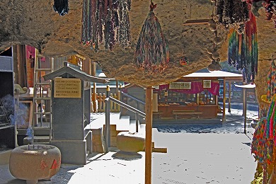 大正九年の春であったかと思ふが、人にすすめられて行ってみると、窟内は御幣や御蝋で一杯になってゐる。佐介稲荷でここも兼ねて受持ってゐると聞いたが、禰宜らしい人や俄神人たちが寄り集って御符を出してゐる。成程ひどい人出である。