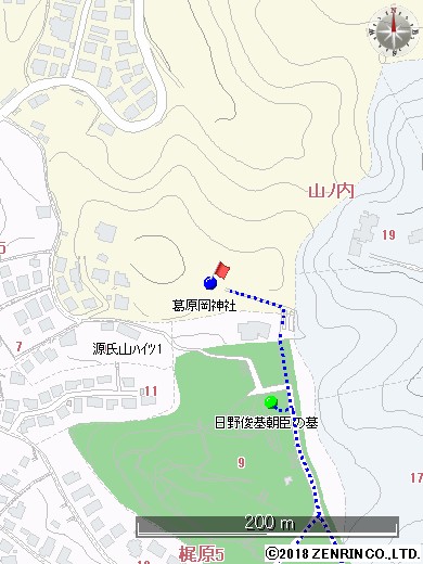 明治天皇は日野俊基卿の足跡を明治維新の先駆けとして深く追慕せられ、1884年勅旨をもって従三位を追贈され、1887年に最期の地であるここ葛原岡に俊基卿を御祭神として神社を創建、宮内省よりの下賜金をもって御社殿を造営、鎮座祭が執り行われた。一説には、地名の起りは葛原親王・鎌倉権五郎景政を祭神とする梶原の御霊社の故地であったことに因むという。