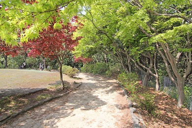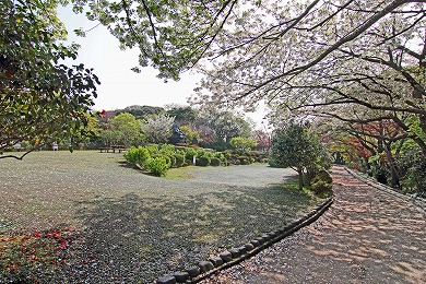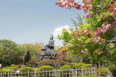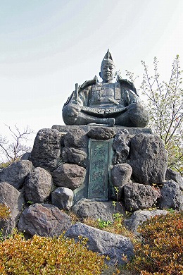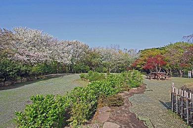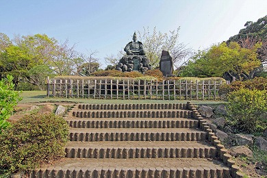 この源氏山を切り開い、1965年(昭和40年)に造くったこの公園は、桜や紅葉が美しい自然体公園として多くの人々に親しまれていてます。芝生の中央広場に、高さが2mほどある、鎌倉に入った1180年(治承4年)ころの若い源頼朝(みなもとのよりとも)の像が立っています。