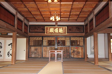 本堂には、中央に開山である心昭空外坐像その前にタイから伝わったといわれる銅造釈迦如来(しゃかにょらい)像、右の方に厨子(ずし)に入った十一面観音菩薩(かんのんぼさつ)立像(りゅうぞう)などがまつられ、堂内の襖(ふすま)には竜や牡丹(ぼたん)とか唐獅子(からじし)などが描かれています