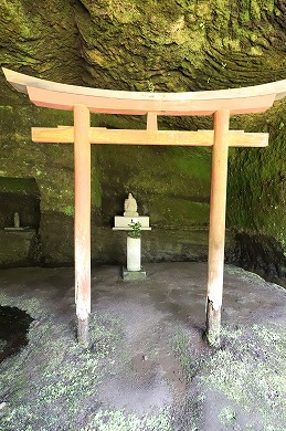 やぐら群の中の1つ「雨宝殿」、人頭蛇身の宇賀福神が祀られている。