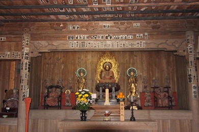 中央に薬師如来像、両脇に日光菩薩と月光菩薩。