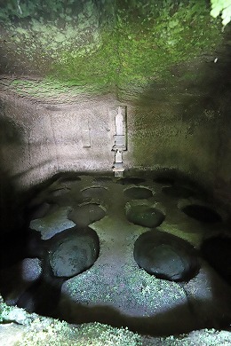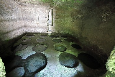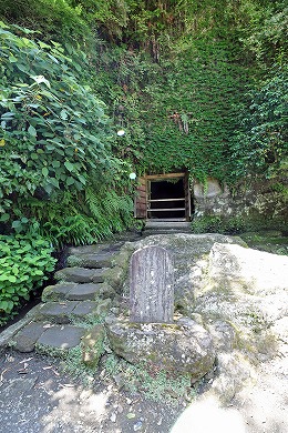 十六井奥壁に緑泥片岩製の阿弥陀銘三尊の来迎の姿を図があったという。現在鎌倉国宝館に寄託中。鎌倉に少ない絵像板碑の一つ。「嘉元四年(1306)八月日敬白」の銘があるそうです。
