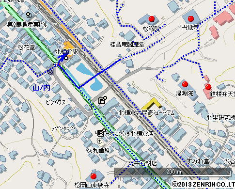 (右折後)真っ直ぐ行くと右に北鎌倉の駅があります。