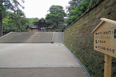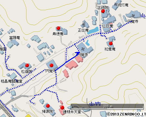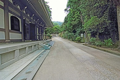 仏殿の向かって右側から、ゆるやかな道を上ります。