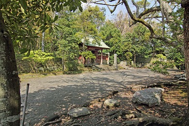 残念ながら、境内には入れません。左から裏に登っていくと墓地に行けます。