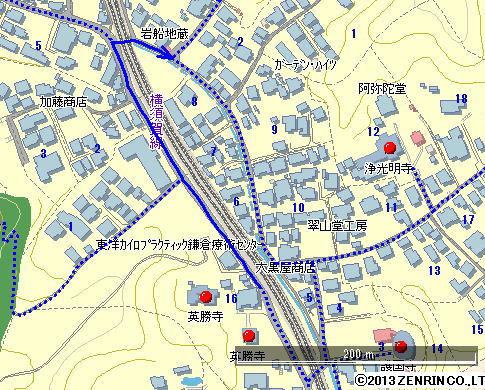 英勝寺を出て、さらに50mほど北に進むとやぐらがあり、『十六夜日記(いざよいにっき)』の作者の阿仏尼(あぶつに)の墓といわれる石塔があります。塔身に「阿仏」の2字が刻まれていますが、後世のものです。 鎌倉市教育委員会発行「かまくら子ども風土記(13版)」より