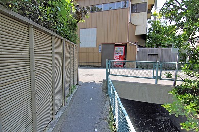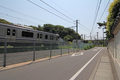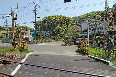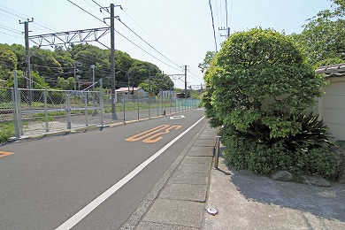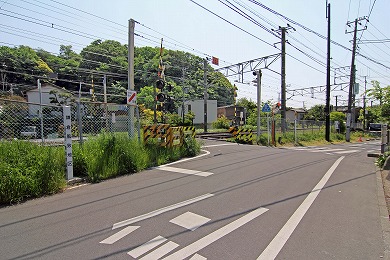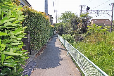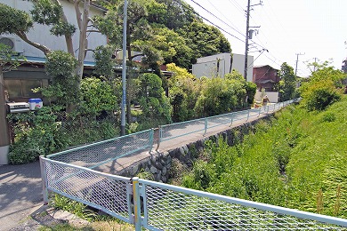 踏切を渡って、すぐ右の小川沿いの小径へ。