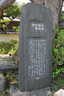 ここは、もと扇ヶ谷(おおぎがやつ)上杉家の家老のような役目だった太田道灌(おおたどうかん)の屋敷のあったところといわれています。そばにある「太田道灌邸旧蹟(きゅうせき)」の史跡案内の石碑には、太田道潅やお勝の局(つぼね)についての説明が刻まれています。