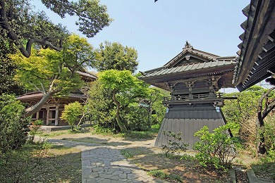 太田道灌の屋敷跡と伝える。扇ケ谷にある浄土宗寺院。鎌倉唯一の尼寺。山号は東光山。寺地は太田道灌の屋敷跡と伝える。開山は英勝院長誉清春。徳川家康の側室でお勝の局といい、太田康資の女(むすめ)。寛永十三年え(1636)開堂供養。第一世庵主は水戸頼房の女小良姫(清因尼)。以来、住持は水戸家からむかえたので、水戸様の尼寺とされた。仏殿・祠堂・鐘楼・庫裡・書院・宝蔵庫などのたたずまいは美事である。