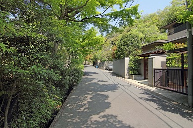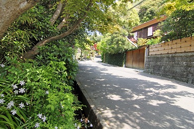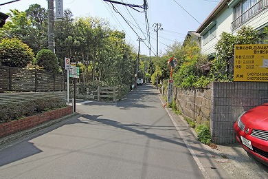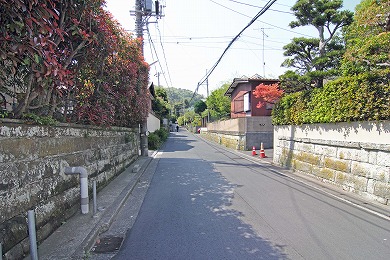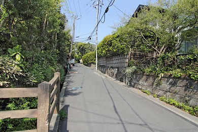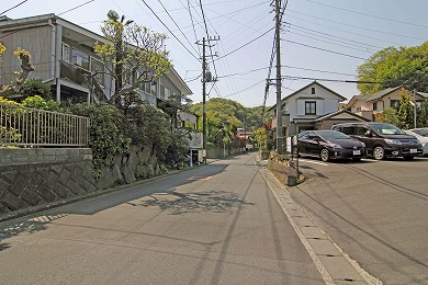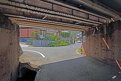横須賀線のガードをくぐります。このあたりの谷は、関東十刹(じっさつ)に数えられていた法泉寺(ほうせんじ)という大きな寺があったので、法泉寺ヶ谷(ほうせんじがやつ)と呼ばれています。
