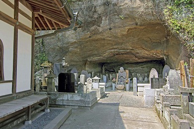 この釈迦堂の裏に、大きなやぐらがあります。不思議なことに、このやぐら内の地面に直接置いた