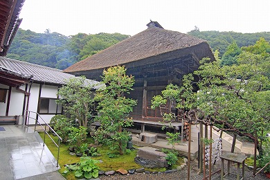 十一面観音坐像と、北条時宗・貞時・高時(たかとき)の僧侶の姿の木像がまつられており、拝観できます。また、境内には、茶室の姻足軒(いんそくけん)で時宗が死期を悟り出家し、同日に逝去した4月4日にちなみ、毎月4日に茶会が行われています。梅やコブシの咲く美しい所で、多羅葉(たらよう)という「葉書」の