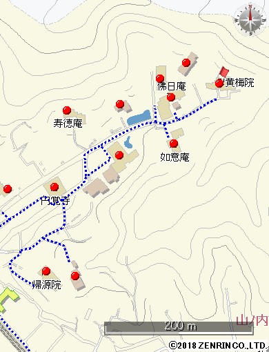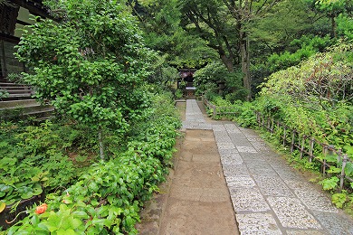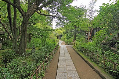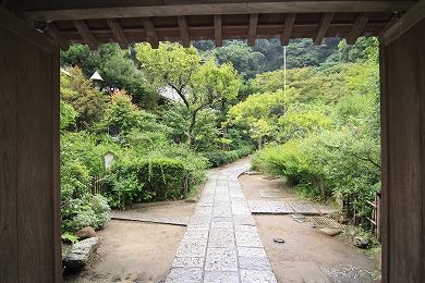 山号は伝衣山(でんねさん)。本尊は千手観音像。五山文学で有名な造庭で有名な夢窓疎石の塔所です。疎石は建治元年(1275)生まれ、京都南禅寺に入寺した後、鎌倉瑞泉寺を開き、元徳元年(1329)に円覚寺五十三世として入寺。後醍醐天皇や足利尊氏の帰依を受けました。観応二年(1351)に死去、臨川寺に葬られましたが、後の文和三年(1354)に弟子の方外宏遠によって円覚寺内にも塔所が造られました。生前、黄梅院は夢窓派の活動拠点となり、また応安元年(1368)に足利尊氏の子、二代将軍足利義詮の遺骨を分骨したことで、さらに発展しました。しかし、足利氏の外護を受けていた時代が終わると、衰微していきました。