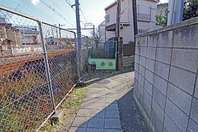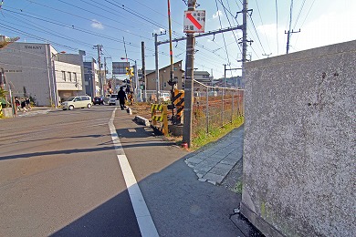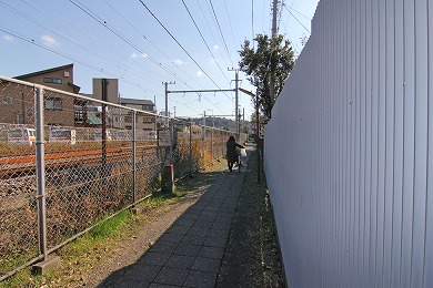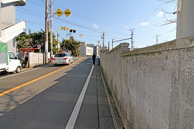 踏切手前で、右の線路際の小道へ。