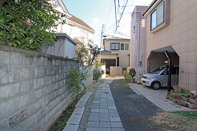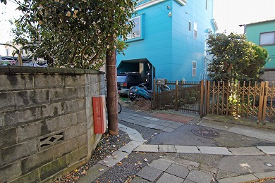 延命寺を出て右へ、踏切手前を右折し小路に入ります。