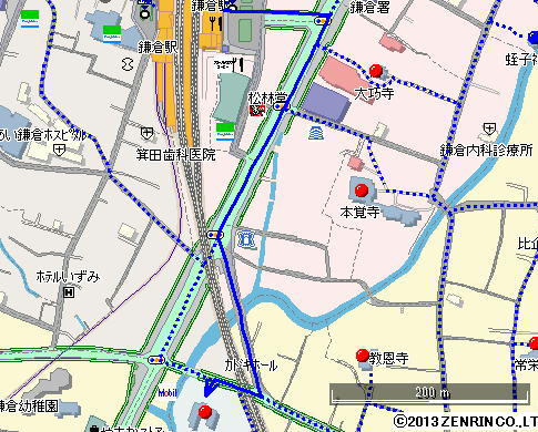 鎌倉駅(東口)を出、真っ直ぐバス停を抜けます。