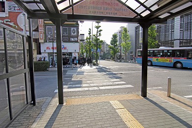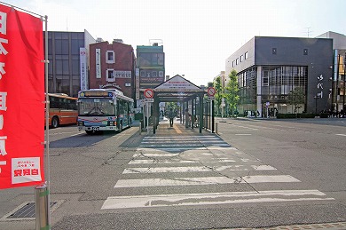 鎌倉駅(東口)を出、バス乗り場を抜けます。