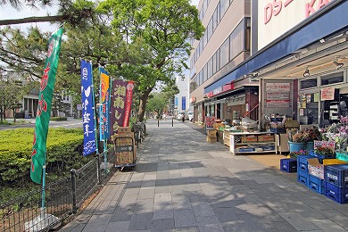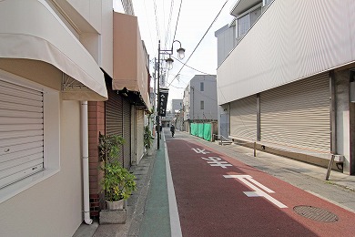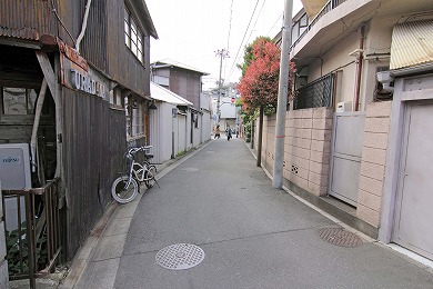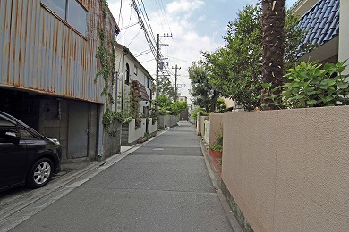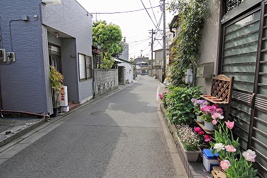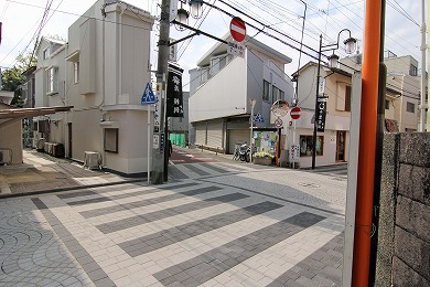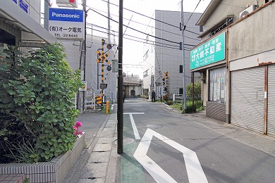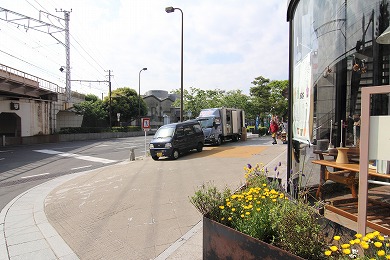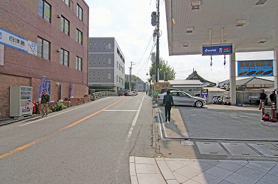 ガソリンスタンドに沿って(歩道のない道)行きます。