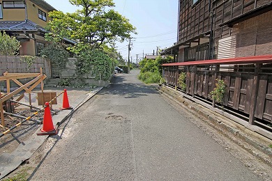 道の右側に「扇谷上杉管領屋敷迹(かんれいやしきあと)(跡)」の史跡案内の石碑があります。このあたりは、「管領屋敷」といわれています。室町時代に山内(やまうち)上杉氏と並び、南関東に勢力をもった扇谷上杉氏の屋敷跡とみられます。扇谷上杉氏は、山内上杉氏とともに、代々関東管領の職を継いだ家です。