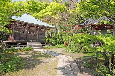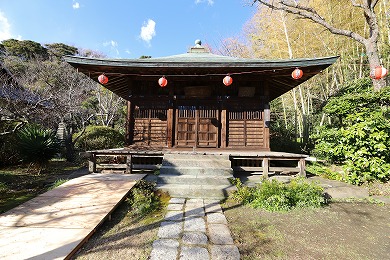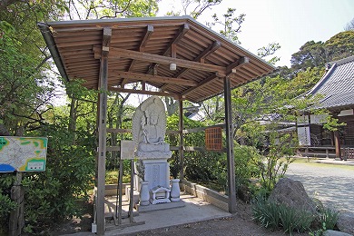 境内に石造の「楊貴妃観音(ようきひかんのん)」がまつられています。楊貴妃は世界三大美女の一人といわれ、中国の唐の時代の玄宗皇帝(げんそうこうてい)の妃(きさき)でしたが「安史(あんし)の乱」で殺害され、玄宗皇帝は妃の姿を観音像に刻ませました。500年後湛海律師(たんかいりっし)が