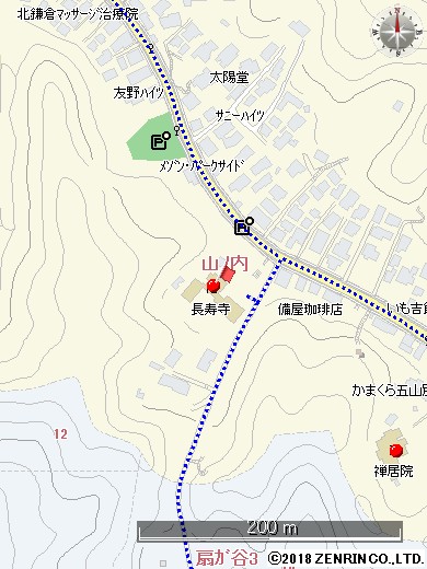 建長寺から小袋坂を下って、明月院踏切へさしかかる途中の左側の小高い石段の上が長寿寺である。亀ケ谷坂はこのお寺の脇へ下りてくる。