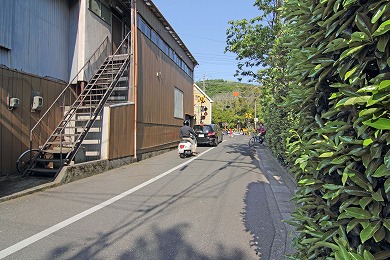 ここを入ります。(自転車が来たら道を譲ってあげてください。)