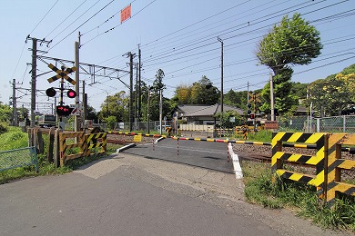 踏切を渡ります。