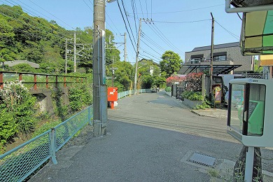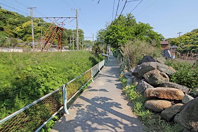 この先、線路に沿った狭い小川沿いの道を行ってみます。