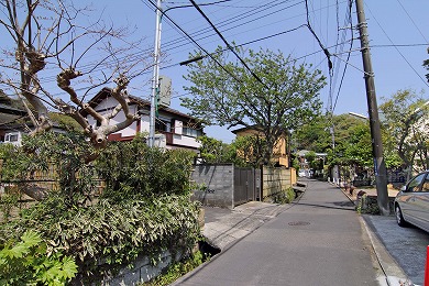 護国寺を出、踏切の手前を右へ。